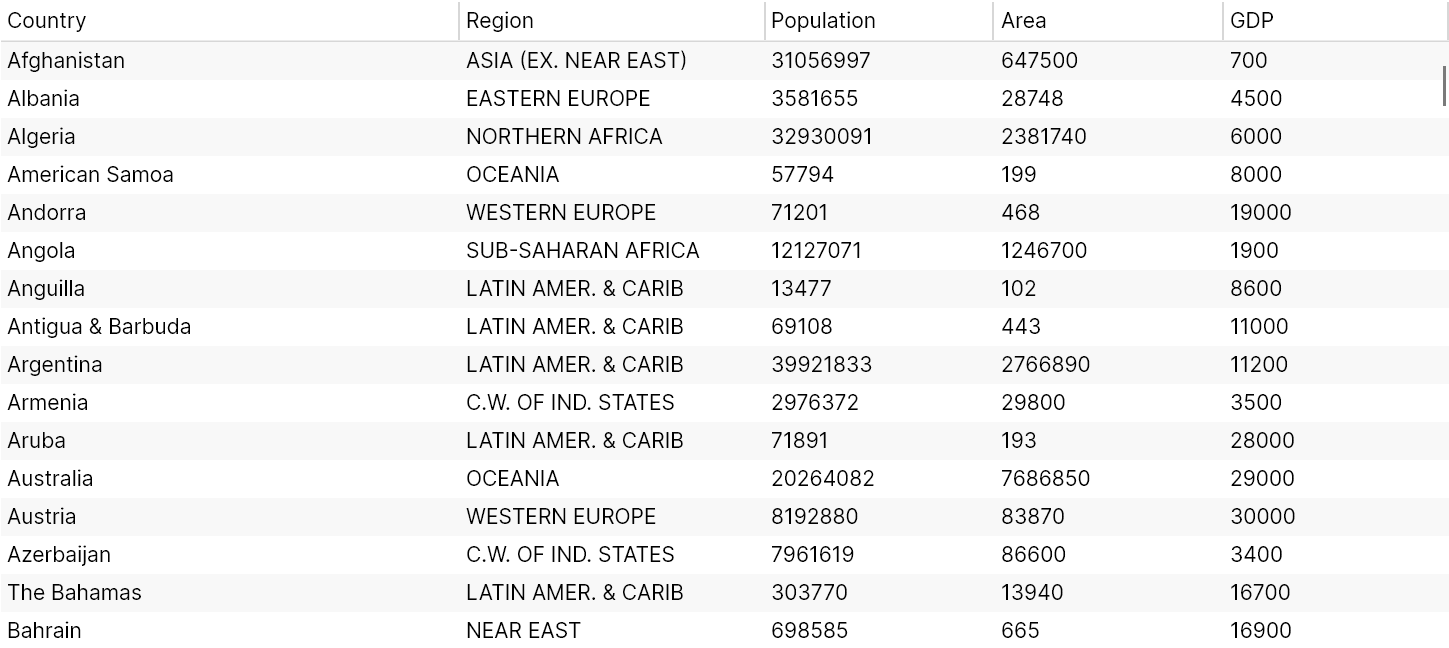 This is an illustration An example of a tree data grid displaying flat data: